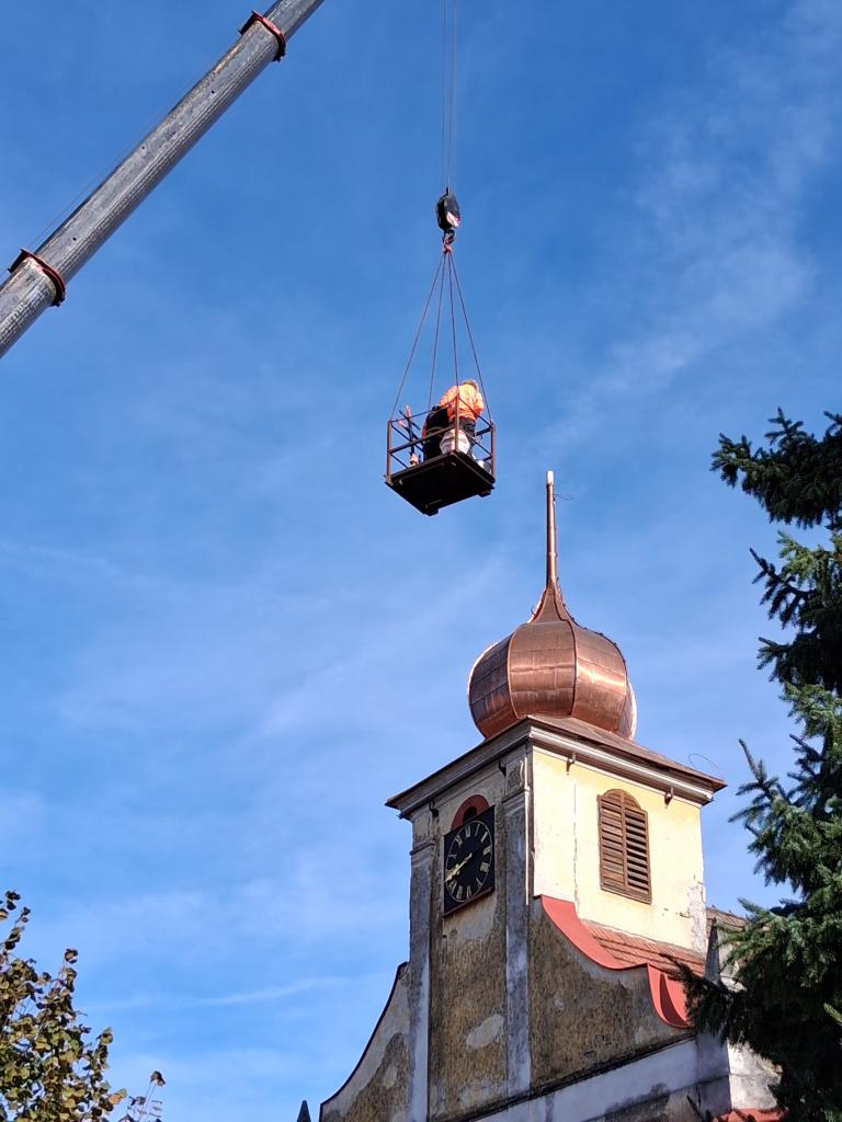 Vyzdvižení věže kostela Liblín
